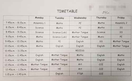 시간표 구성과 주요 과목